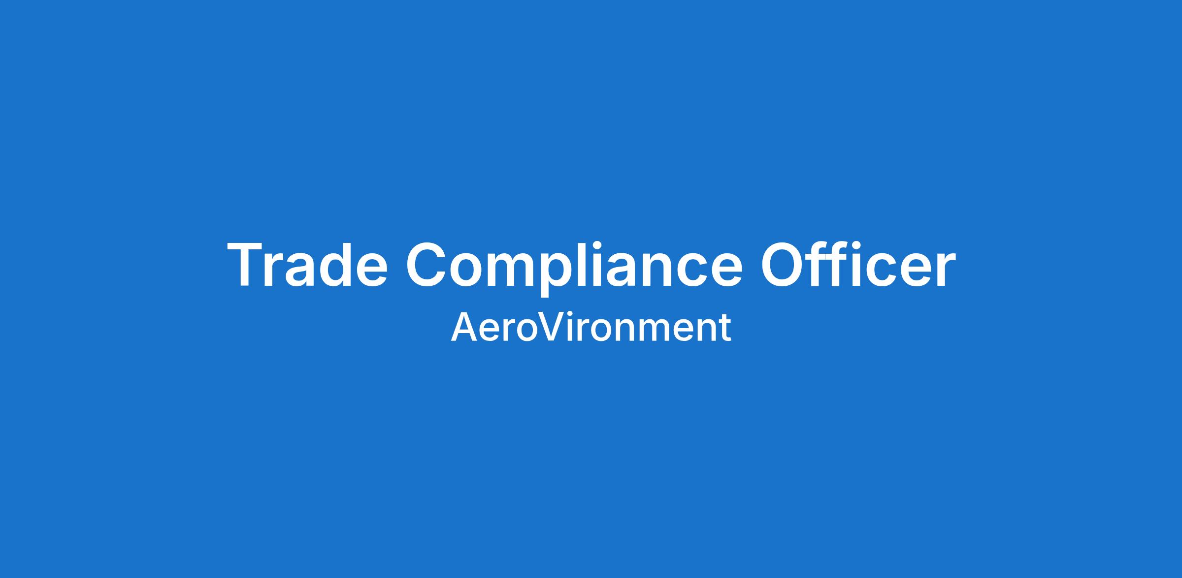 Under the direction of the Trade Compliance Leadership, the primary responsibility of the Trade Compliance Officer is to be a strong individual contributor to the AeroVironment organization. Responsible for performing the day to day activities required to operate a fully effective export compliance program to ensure company compliance with US regulatory and internal policy requirements relating to export licensing, exemption usage, export training and recordkeeping.