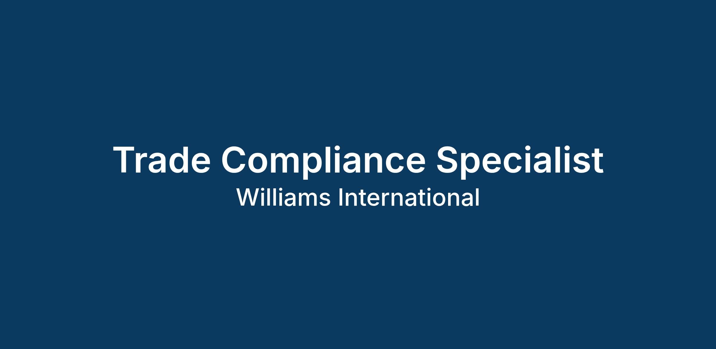 Williams International has an exciting opportunity for a Trade Compliance Specialist to join our team. The Trade Compliance Specialist will ensure trade compliance in the development, implementation and management of the export/import compliance program for Williams International.