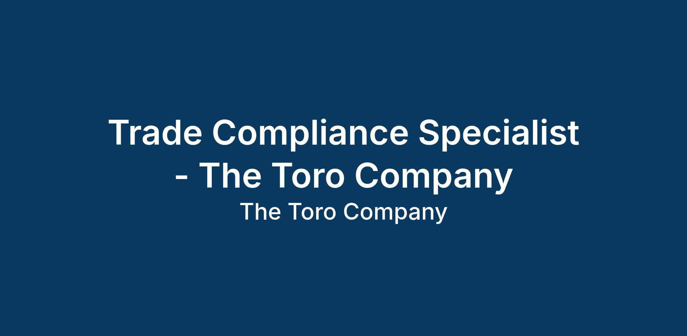 Position requires a high degree of communication and interaction with other areas of the company as well as customs brokers with ability to ensure detailed compliance with applicable U.S. and international regulations and Toro’s processes.