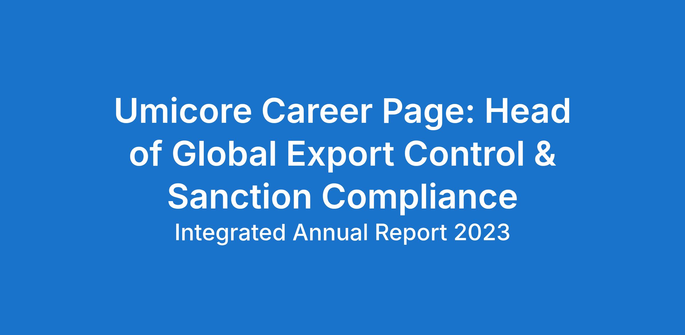 As Global Head of Export Controls and Sanctions (EC&S), you play a critical role in safeguarding Umicore's ability to operate across international markets, responsibly, compliantly, and with strategic foresight. Reporting directly to the Director of Transport & Trade Compliance, you will be the architect and owner of Umicore's global export control and sanctions compliance framework, and the authoritative voice on EC&S matters across the organisation.