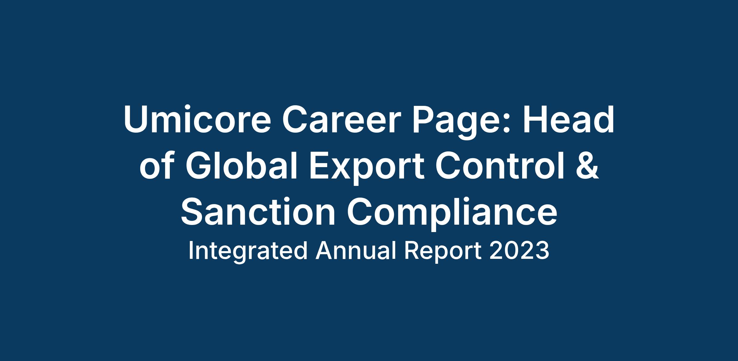As Global Head of Export Controls and Sanctions (EC&S), you play a critical role in safeguarding Umicore's ability to operate across international markets, responsibly, compliantly, and with strategic foresight. Reporting directly to the Director of Transport & Trade Compliance, you will be the architect and owner of Umicore's global export control and sanctions compliance framework, and the authoritative voice on EC&S matters across the organisation.